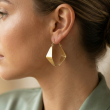 These striking earrings are artisan crafted from high-quality materials and finished with an 18K gold plating for a luxurious, shiny appearance. Featuring a bold geometric diamond shape, they are lightweight and designed to gently dangle from the ear, making them suitable for both everyday wear and special occasions. The polished surface and structured lines blend modern minimalism with handcrafted artistry, ensuring each piece is unique. These statement earrings are fitted with secure hooks for comfortable wear, ideal for elevating both casual outfits and evening ensembles with a sophisticated, golden accent.