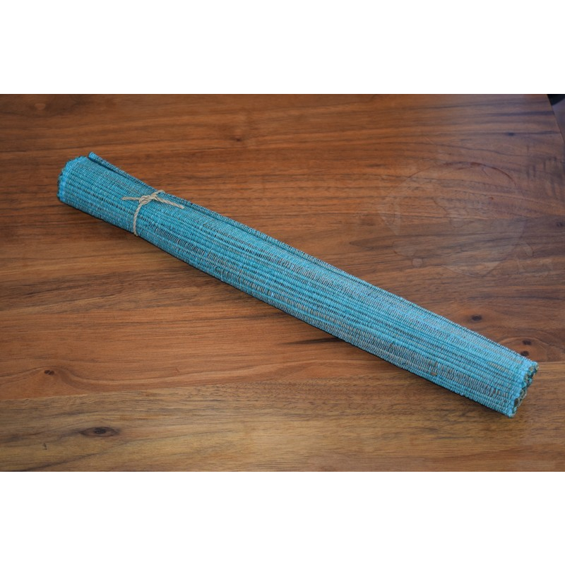 Add a fresh pop of color to your table with this set of aqua-hued woven mats, designed for both style and practicality.