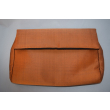This elegant clutch in a warm burnt orange shade is crafted from lustrous silk. Its minimalist flap design makes it a perfect companion for both formal and festive occasions.