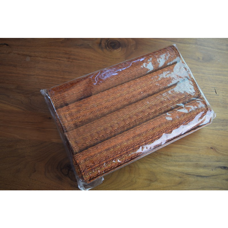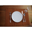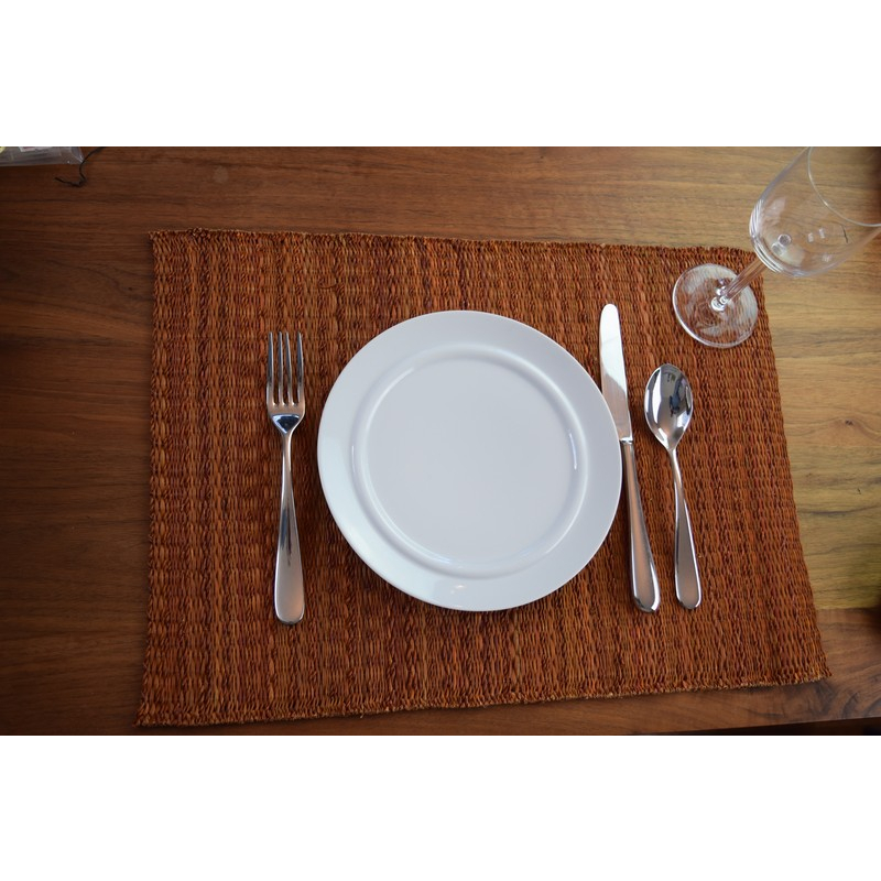 A set of six handwoven placemats in rich cinnamon tones. Crafted with natural fibers and a tight weave, they bring warmth and texture to any dining setting.