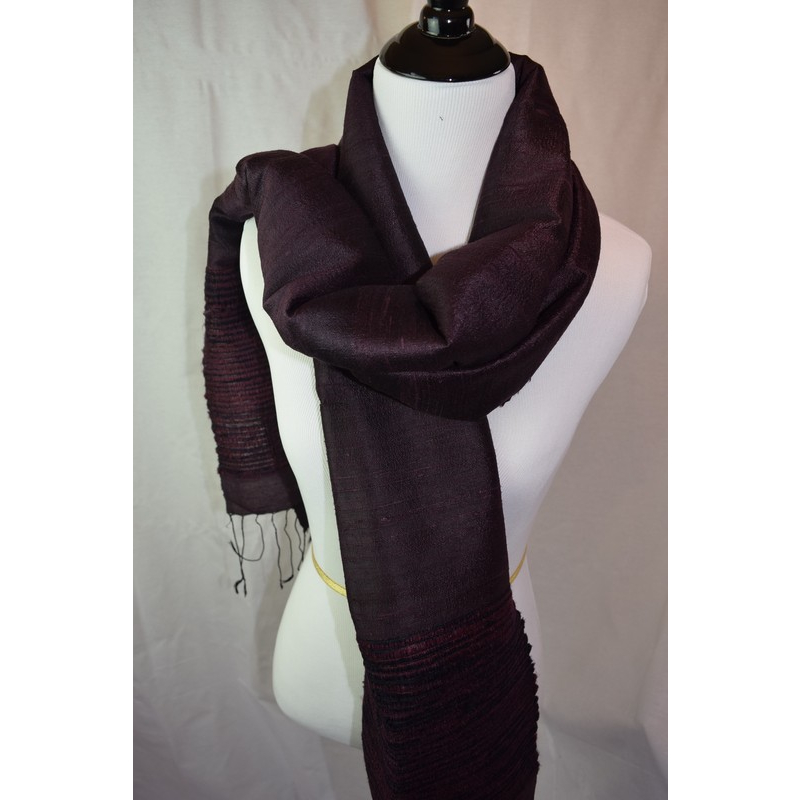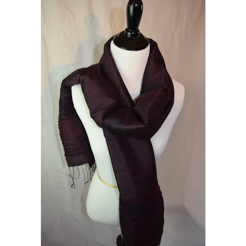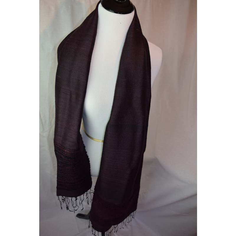 Wrap yourself in luxury with this gorgeous dark burgundy silk shawl, featuring exquisite tone-on-tone embroidery. This versatile accessory, also known as a rebozo or stole, is crafted from fine silk with a woven fabric texture, making it a beautiful and elegant addition to any outfit. Its key features include a dark burgundy color, primary material of silk (with other textile types like wool, acrylic, and velvet visible in some images), and a multi-functional style as a shawl, rebozo, scarf, stole, or wrap. The tone-on-tone embroidery adds a refined detail, and the shawl measures 7 inches in height, 32 inches in width, and 5.6 inches in depth, with a weight of 325.6g (10 oz.).