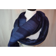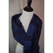 Crafted from lustrous silk, this richly textured scarf features horizontal striping in shades of deep indigo. The subtle sheen and tonal weave make it a refined accessory for both formal and everyday wear.