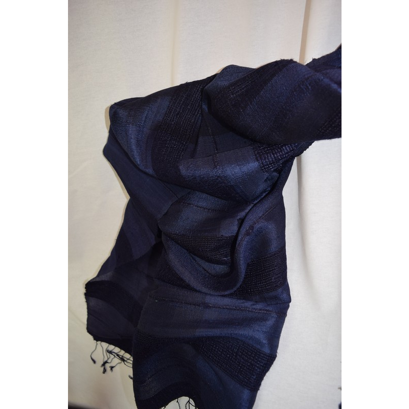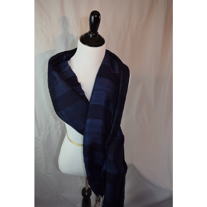Indulge in the exquisite beauty of the Thongphunchang Shawl, a truly gorgeous accessory crafted from luxurious dark blue silk. This elegant shawl features delicate tone-on-tone embroidery, adding a subtle yet sophisticated touch to its rich color. Measuring 82 inches in length and 25.6 inches in width, it offers a generous drape perfect for any occasion. Whether you're looking to elevate your evening wear or add a touch of refined elegance to your everyday look, this stunning silk shawl is a timeless piece that promises both comfort and style.