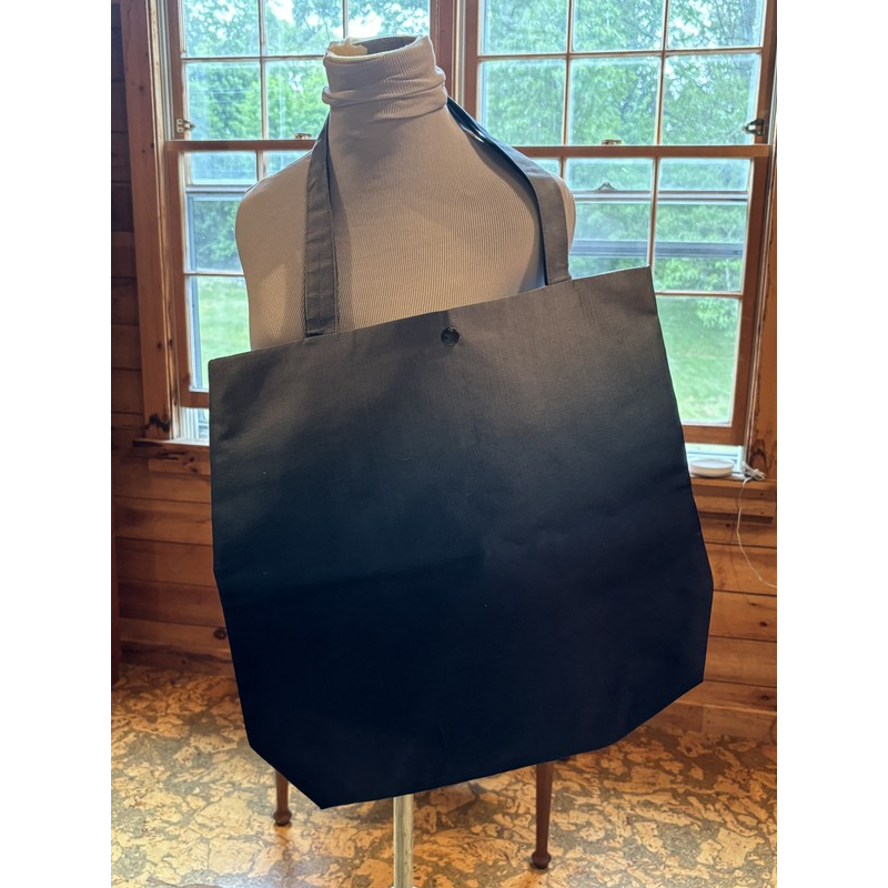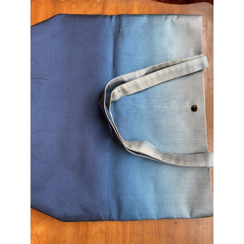 The same White Gold-gray tote bag shown flat, highlighting its clean lines and structured shape. Durable and stylish with broad handles and a metallic button closure.