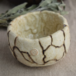 This artisanal bowl is crafted in a kintsugi-inspired style, featuring hand-applied lines reminiscent of traditional Japanese repair techniques. The creamy, crackled glaze finish highlights its organic, tactile surface, enhancing both aesthetic and functional appeal. Designed for ritual or decor purposes, its compact size suits small vignettes, altar settings, or incense burning. The bowl's unique character and texture make it a singular piece for mindful living spaces, elevating the everyday act of burning incense or holding small treasures. Each piece is individually made, ensuring a one-of-a-kind addition to any home environment.