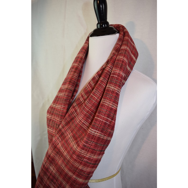Add a rustic charm to your table setting with this handwoven table runner in rich red plaid. Its textured weave and subtle fringe make it perfect for casual and festive dining alike.