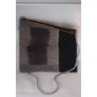 A unique sling pouch crafted with three textile panels—charcoal grey, deep black, and faded indigo—each accented with traditional kantha-style hand stitching in red, blue, and yellow thread. Features a top zipper closure and a soft cord strap. A functional yet artisanal accessory ideal for carrying essentials.