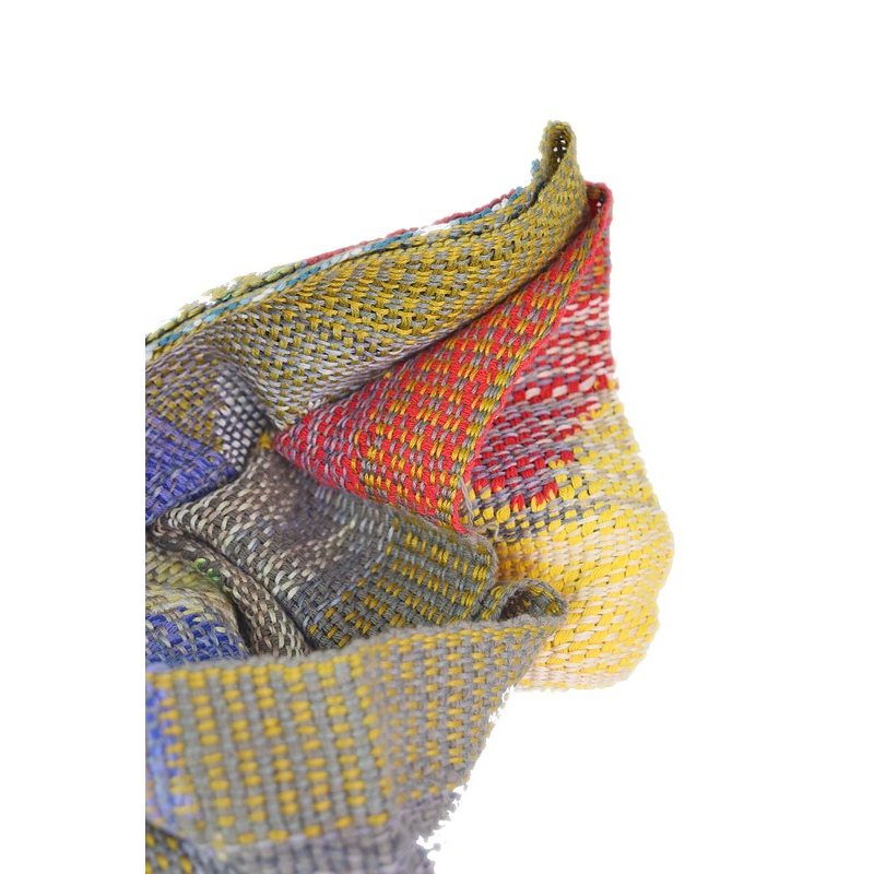 A vibrant display of artisan craftsmanship, this multicolor handwoven scarf features an energetic mix of hues and patterns. Finished with playful fringes, it’s a bold, cheerful accessory with a heartwarming handmade story.