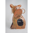 A handcrafted cat sculpture in rustic-finish metal, featuring cut-out patterns and golden facial accents. Perfect for adding a quirky, artisanal charm to any space.