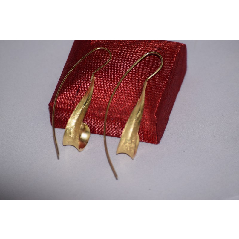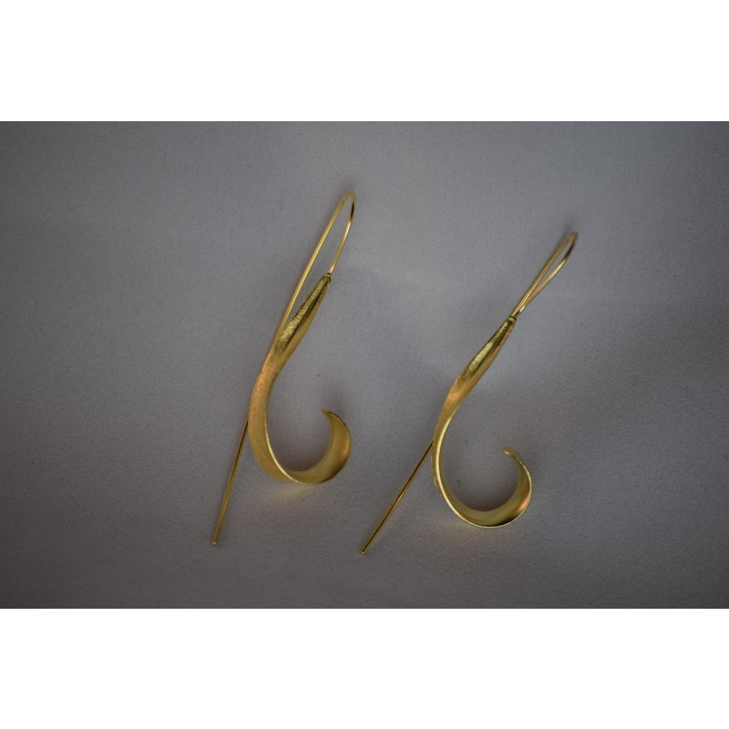 Elegant and artistic, these gold-tone earrings feature a uniquely sculpted form with an elongated hook, blending modern design with traditional charm.