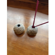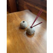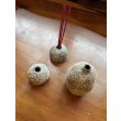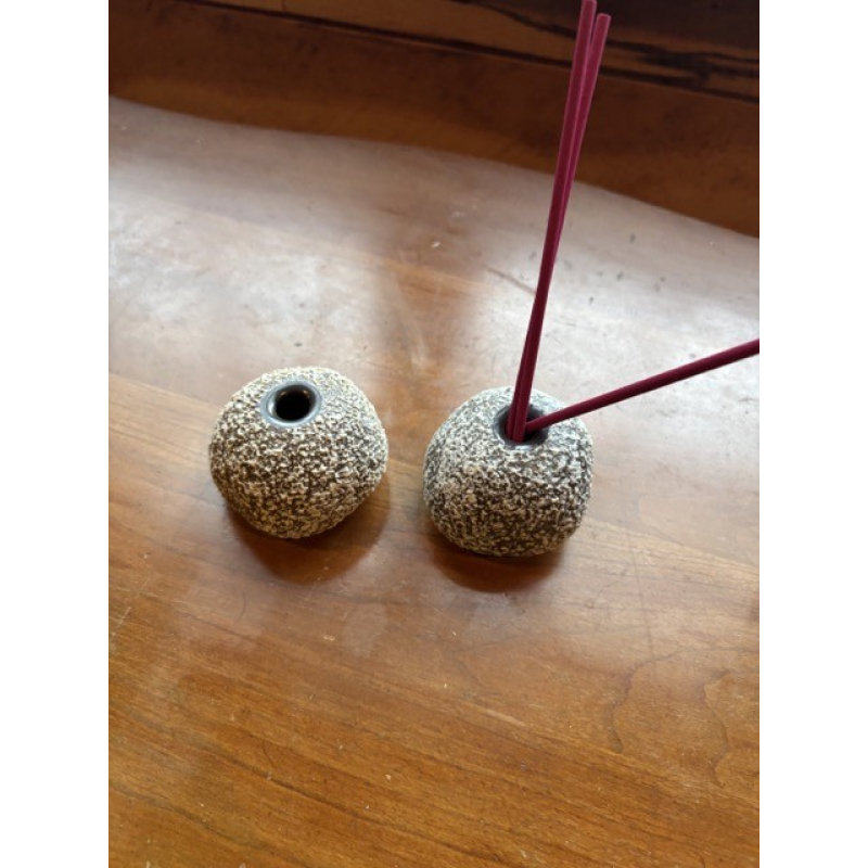 These two petite ceramic vases feature an organic, stone-like surface with a speckled white and brown matte finish that mimics natural textures. Rounded and compact, each vase measures 2 1/8 inches tall and 2.5 inches in diameter, making them perfect for small floral stems, dried botanicals, or use as incense holders—as shown in the image. Their narrow openings and minimalist form highlight a modern wabi-sabi aesthetic, embracing natural imperfection and texture. Whether displayed individually or as a pair, these vases bring a calming, earthy presence to shelves, desktops, or zen-inspired spaces.