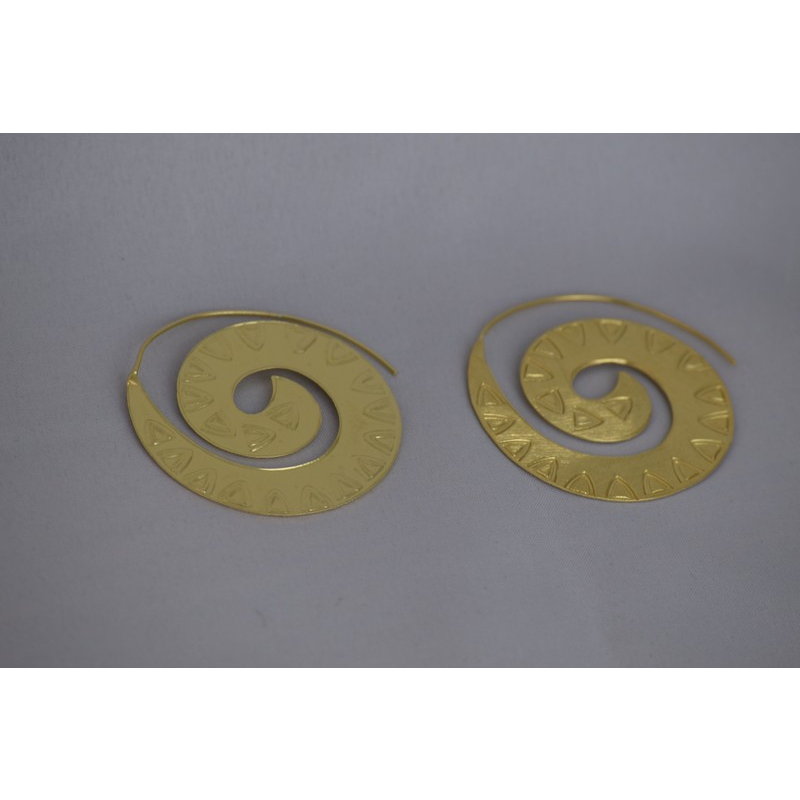Handcrafted brass earrings featuring spiral motifs etched with radiant sunburst patterns. Lightweight and bold, these earrings bring a striking, artistic edge to everyday or festive looks.