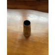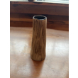 This slender, cylindrical flower vase is crafted from ceramic and features a matte finish with fine vertical striations in brown over a white base, evoking the look of hand-carved wood grain. The shape subtly tapers outward toward the base, lending it a modern, minimalist silhouette. Standing 5 inches tall and 3 inches in diameter, this vase is ideal for single stems or minimalist floral arrangements. Its tactile texture and natural tones make it a versatile decorative piece for shelves, mantels, or tabletop settings with organic or Scandinavian decor themes.