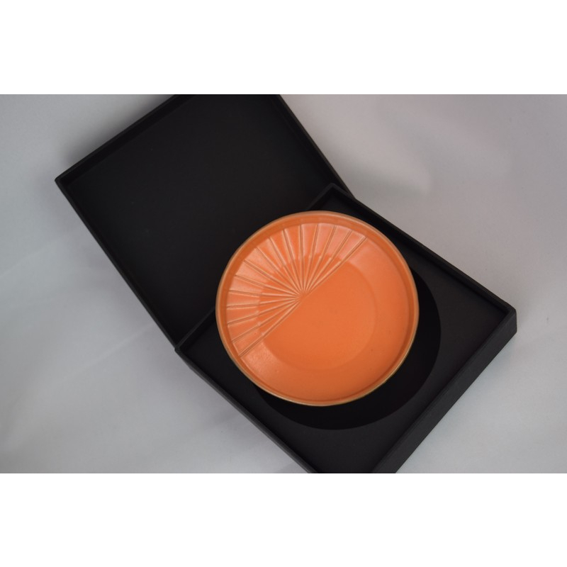 Handcrafted terracotta ceramic dish featuring a half-fan embossed design. A beautiful and functional addition to any serving set.