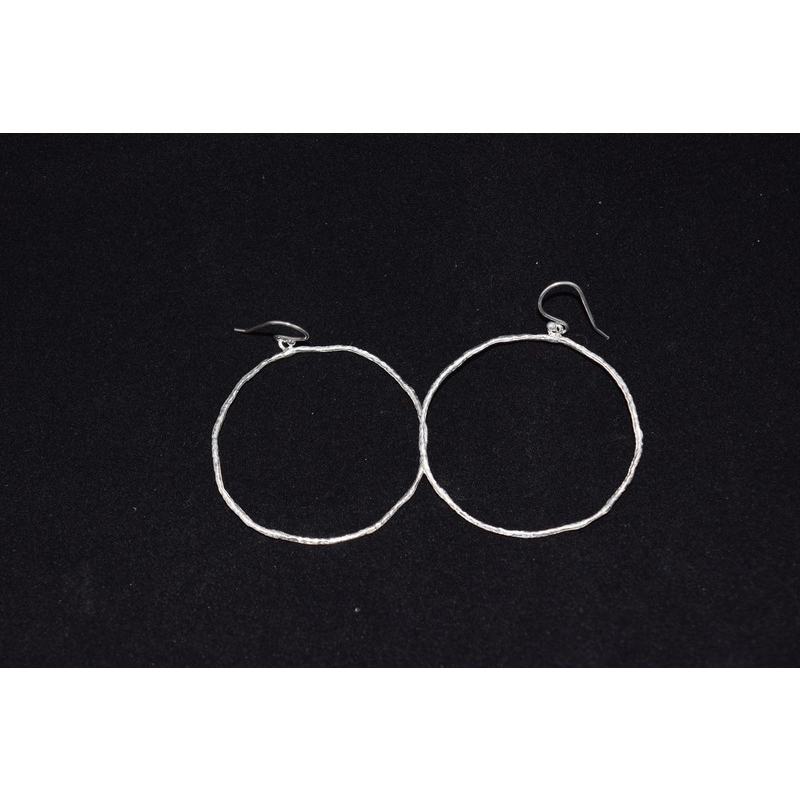 Bold yet lightweight, these White Gold hoop earrings feature a handcrafted hammered texture, creating a rustic elegance. Their organic shape and subtle shimmer make them perfect for both everyday wear and casual sophistication.