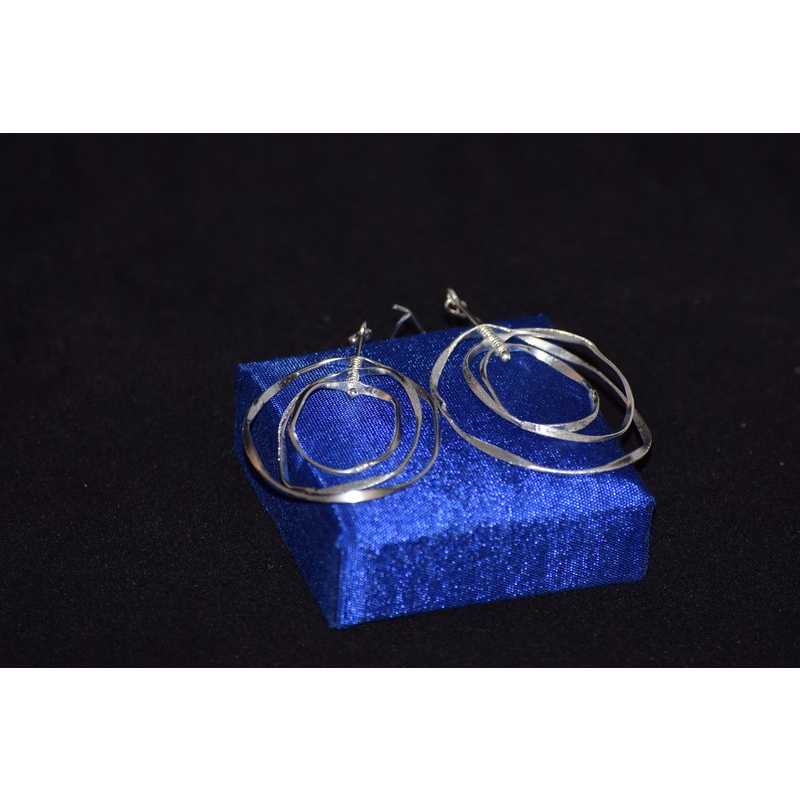 Elegant White Gold earrings featuring three intertwined, hammered loops that add dimension and subtle shimmer. Lightweight and modern, perfect for daily wear or casual outings.
