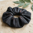 This Black Handmade Stitch Accent Scrunchie is crafted from soft black fabric, featuring subtle decorative white and red stitched lines for a stylish, artisanal touch. Its elasticized design provides a secure yet gentle hold, making it suitable for all hair types and perfect for various updo styles. The unique stitched detailing gives this classic accessory a sophisticated update, blending functionality with a modern handcrafted aesthetic. Lightweight and comfortable for all-day wear, this scrunchie is ideal for everyday use, workouts, or casual outings, while also making a thoughtful and practical gift choice for hair accessory lovers.