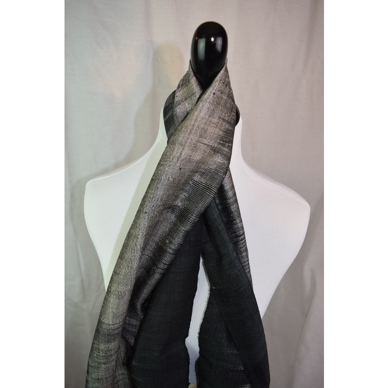 Chic hand-dyed silk scarf in a gradient of black to White Gold. Lightweight with a subtle sheen, ideal for both minimalist styles and evening wear.