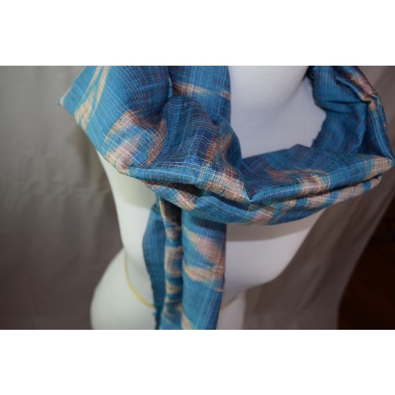 Lightweight cotton scarf in rich blue tones with soft plaid patterns. The breathable fabric and gentle weave make it ideal for casual styling.