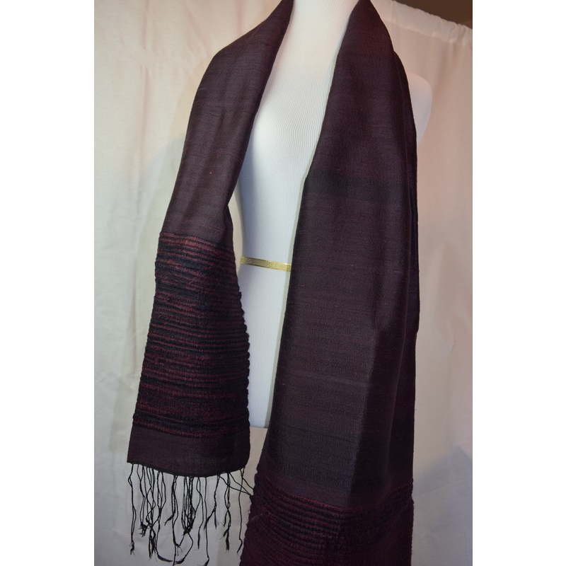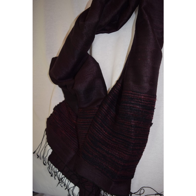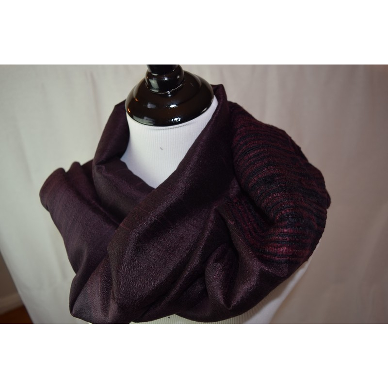 Wrap yourself in luxury with this gorgeous dark burgundy silk shawl, featuring exquisite tone-on-tone embroidery. This versatile accessory, also known as a rebozo or stole, is crafted from fine silk with a woven fabric texture, making it a beautiful and elegant addition to any outfit. Its key features include a dark burgundy color, primary material of silk (with other textile types like wool, acrylic, and velvet visible in some images), and a multi-functional style as a shawl, rebozo, scarf, stole, or wrap. The tone-on-tone embroidery adds a refined detail, and the shawl measures 7 inches in height, 32 inches in width, and 5.6 inches in depth, with a weight of 325.6g (10 oz.).