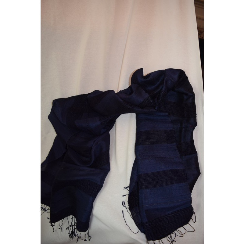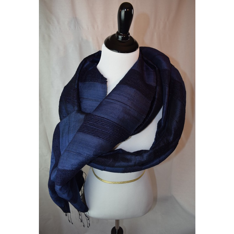 Indulge in the exquisite beauty of the Thongphunchang Shawl, a truly gorgeous accessory crafted from luxurious dark blue silk. This elegant shawl features delicate tone-on-tone embroidery, adding a subtle yet sophisticated touch to its rich color. Measuring 82 inches in length and 25.6 inches in width, it offers a generous drape perfect for any occasion. Whether you're looking to elevate your evening wear or add a touch of refined elegance to your everyday look, this stunning silk shawl is a timeless piece that promises both comfort and style.