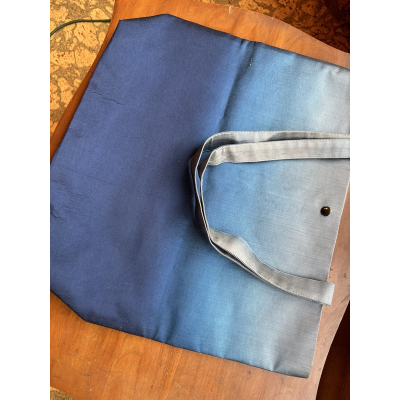 The same White Gold-gray tote bag shown flat, highlighting its clean lines and structured shape. Durable and stylish with broad handles and a metallic button closure.