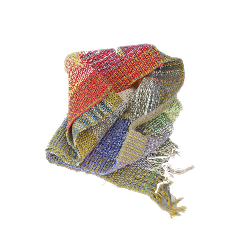 A vibrant display of artisan craftsmanship, this multicolor handwoven scarf features an energetic mix of hues and patterns. Finished with playful fringes, it’s a bold, cheerful accessory with a heartwarming handmade story.
