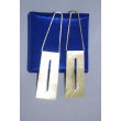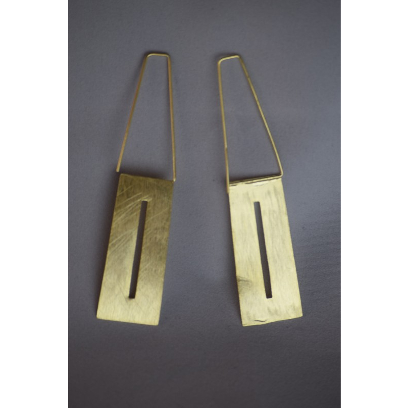 These elongated brass earrings feature a modern, geometric design with slim rectangular cut-outs. Lightweight yet striking, they lend a contemporary edge to everyday and evening styles alike.
