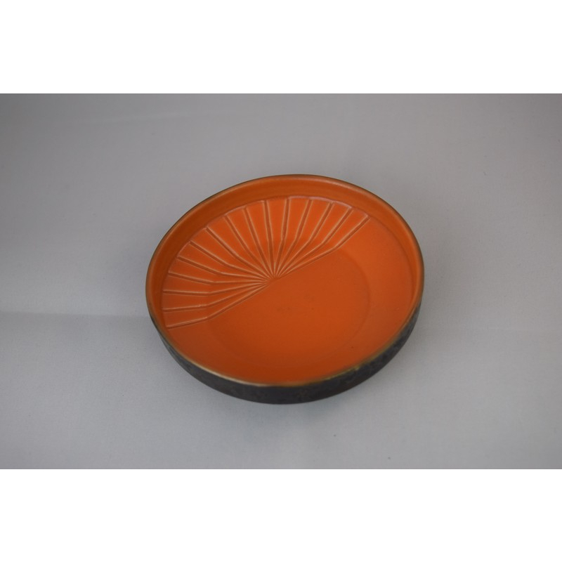 Handcrafted terracotta ceramic dish featuring a half-fan embossed design. A beautiful and functional addition to any serving set.