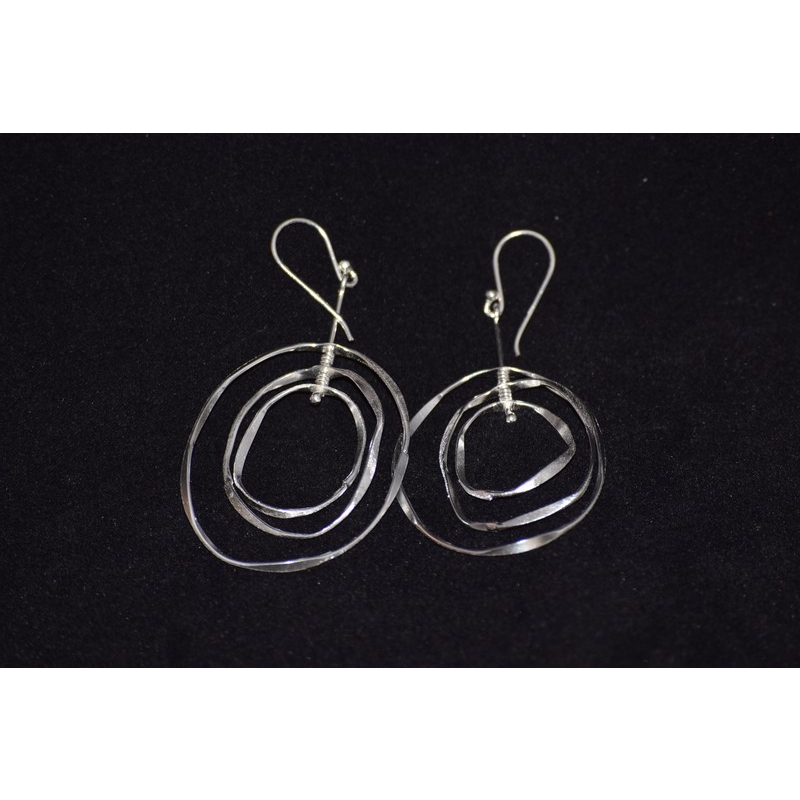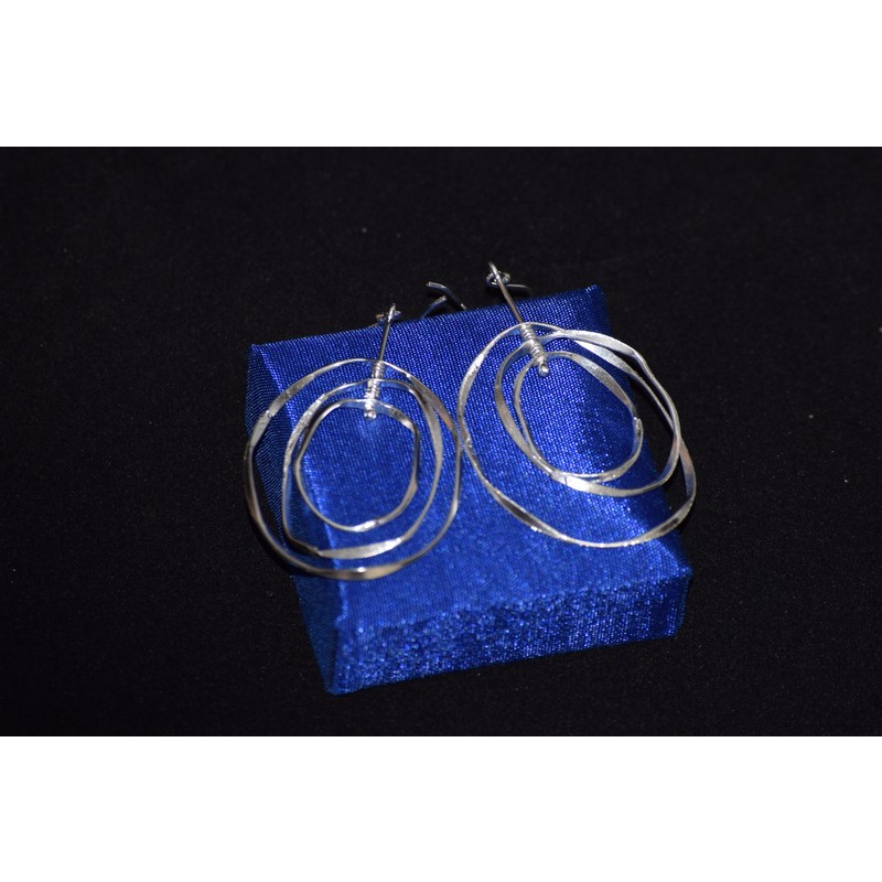 Elegant White Gold earrings featuring three intertwined, hammered loops that add dimension and subtle shimmer. Lightweight and modern, perfect for daily wear or casual outings.