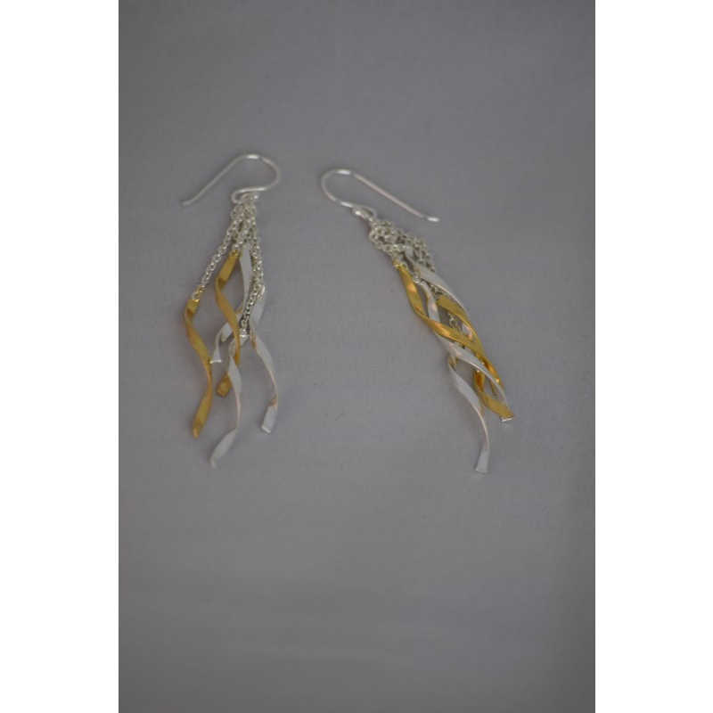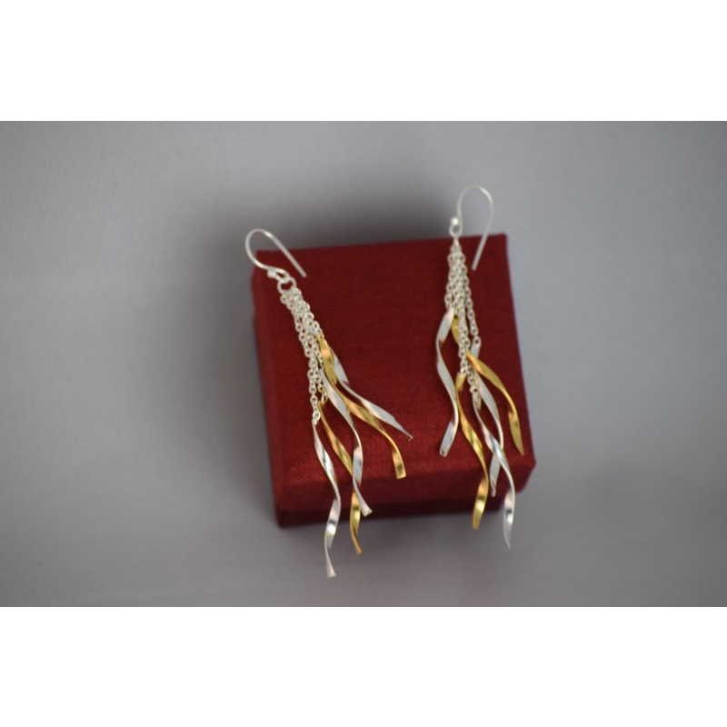 Elegant drop earrings with twisting strands of White Gold and gold tones, creating a fluid, cascading motion. Their mixed-metal finish adds depth and movement to your accessory collection.